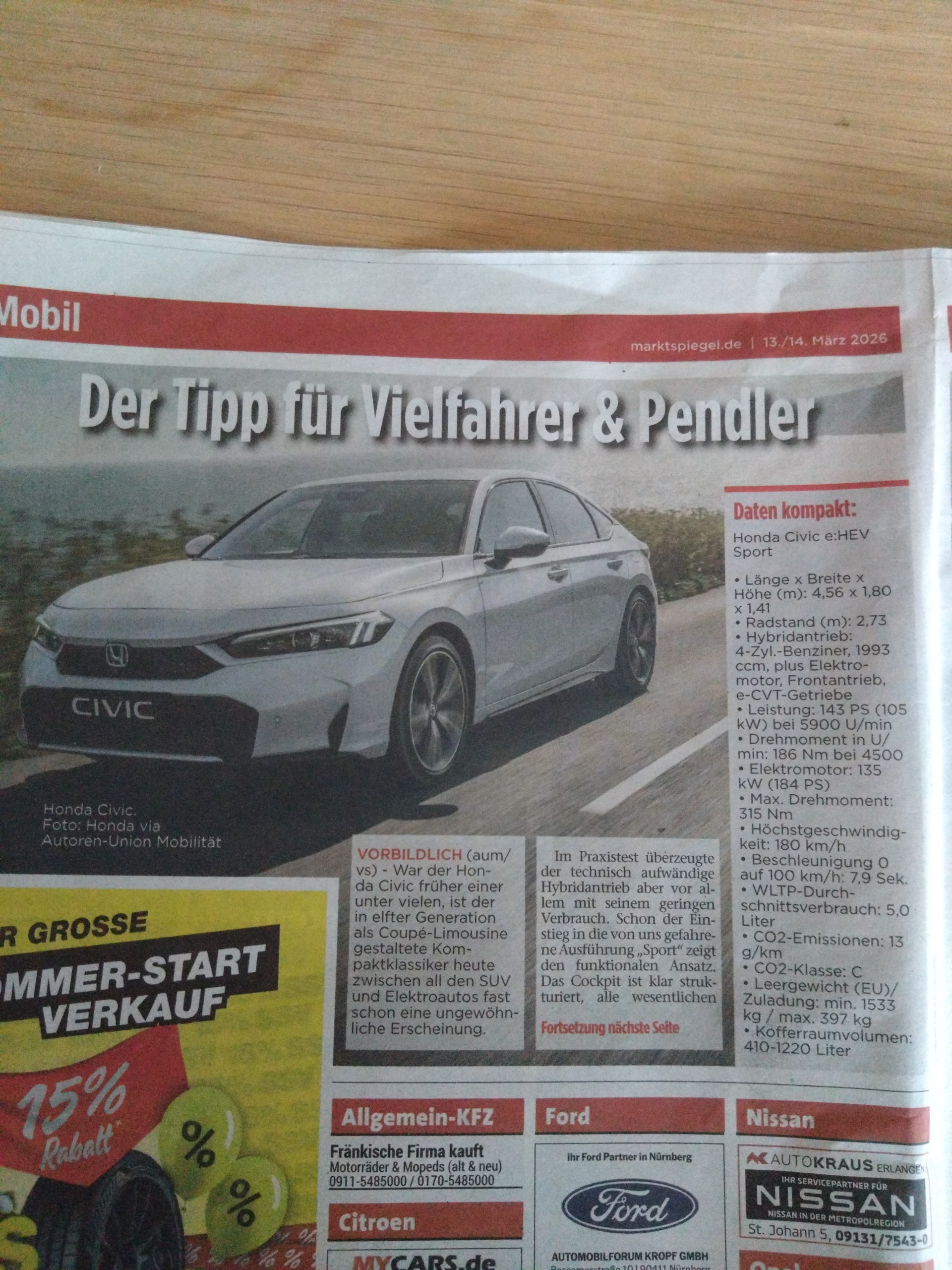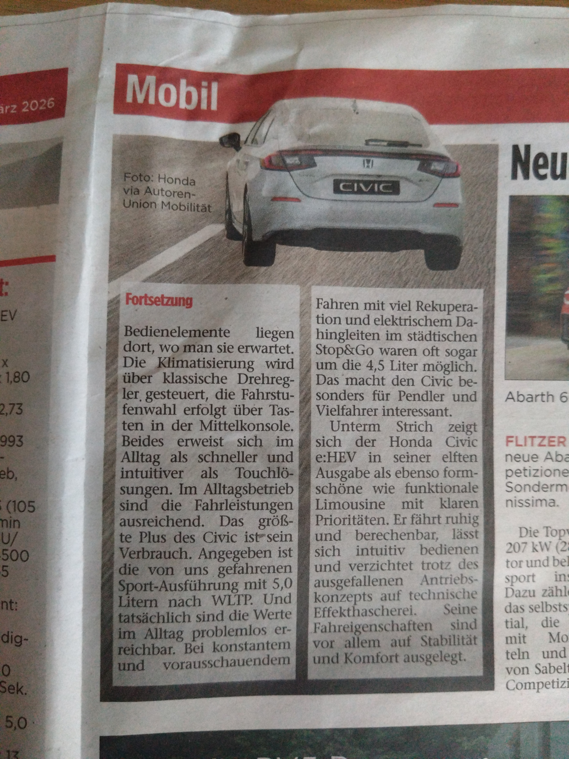 Premium-Member ![]() ![]() Name: Pierre Geschlecht: Fahrzeug: Gisela - FL5R - Mr. Blum FK2 Tourer - Soli EH6 Del Sol Motegi Anmeldedatum: 10.10.2005 Beiträge: 24414 Wohnort: Langenzenn | zitieren die neue Garantie gilt erst für Fahrzeuge ab EZ 1.1.2026 Verfasst am: 09.01.2026, 08:24 zitieren Neuzulassungen Honda Civic gesamt im Dezember 2025 84 Civics davon 39 e:HEV Civic's 1151 Civics insgesamt im Jahr 2025 -- 15,8 % der Neuzulassungen von Honda im Jahr 2025 Verfasst am: 20.01.2026, 14:29 zitieren Die schlüssige Brückenlösung bei NTV https://www.n-tv.de/auto/Honda-Civic-e-HEV-bietet-Brueckenloesung-fuer-E-Auto-Skeptiker-id30248654.html Verfasst am: 09.02.2026, 12:43 zitieren Verfasst am: 09.02.2026, 12:44 zitieren Neuzulassungen Honda Civic gesamt im Januar 2026 40 Civics davon 30 e:HEV Civic's 40 Civics insgesamt im Jahr 2026 -- 10,0 % der Neuzulassungen von Honda im Jahr 2026 Verfasst am: 10.02.2026, 12:07 zitieren Nachdem er Family Car 2026 in UK geworden ist liefert er natürlich auch top in Spanien ab bei Tests km77 Verfasst am: 07.03.2026, 20:53 zitieren Neuzulassungen Honda Civic gesamt im Februar 2026 37 Civics davon 28 e:HEV Civic's 77 Civics insgesamt im Jahr 2026 -- 8,4 % der Neuzulassungen von Honda im Jahr 2026 Verfasst am: 15.03.2026, 07:08 zitieren Werbung bei uns in der lokalen Briefkastenwerbbung und ich damit mal nix zu tun DSC_3825.JPG - [Bild vergrößern] DSC_3826.JPG - [Bild vergrößern] |